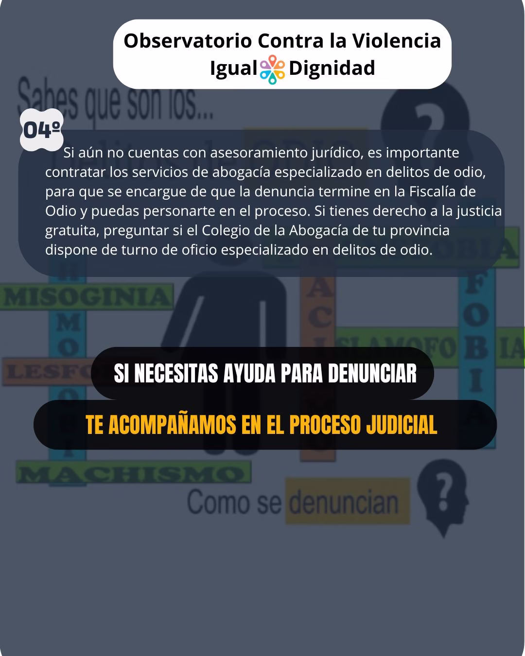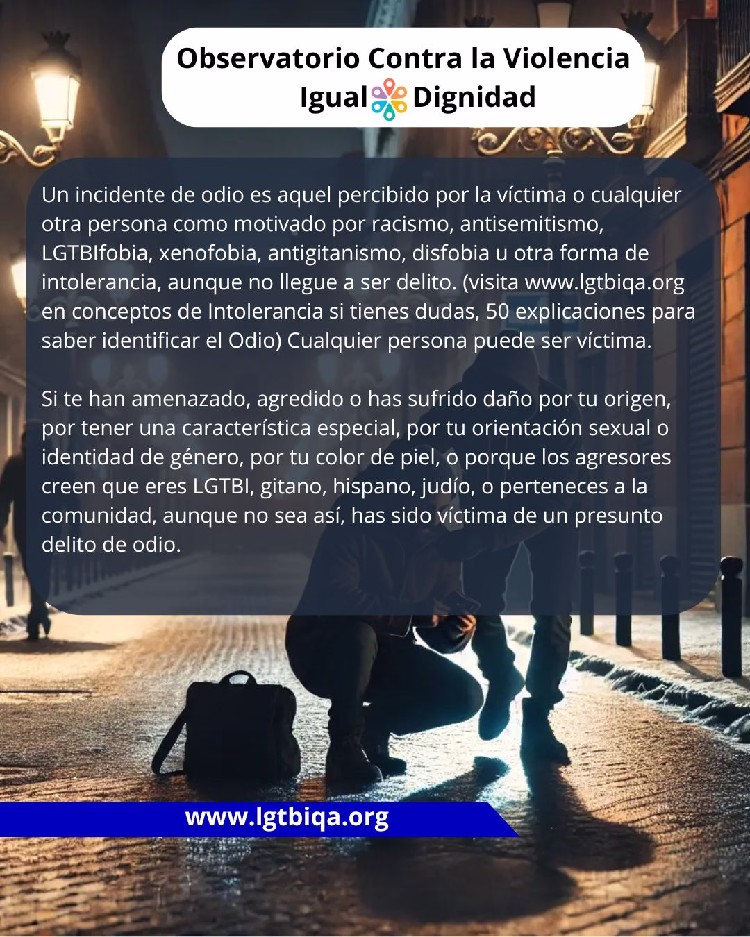Si quieres apoyar nuestro trabajo y ayudar para que sigamos registrando agresiones, poder visibilizarlas. Hazte Socio/a/e de Igual Dignidad o realiza Donación. Entre tod@s mejoramos la sociedad