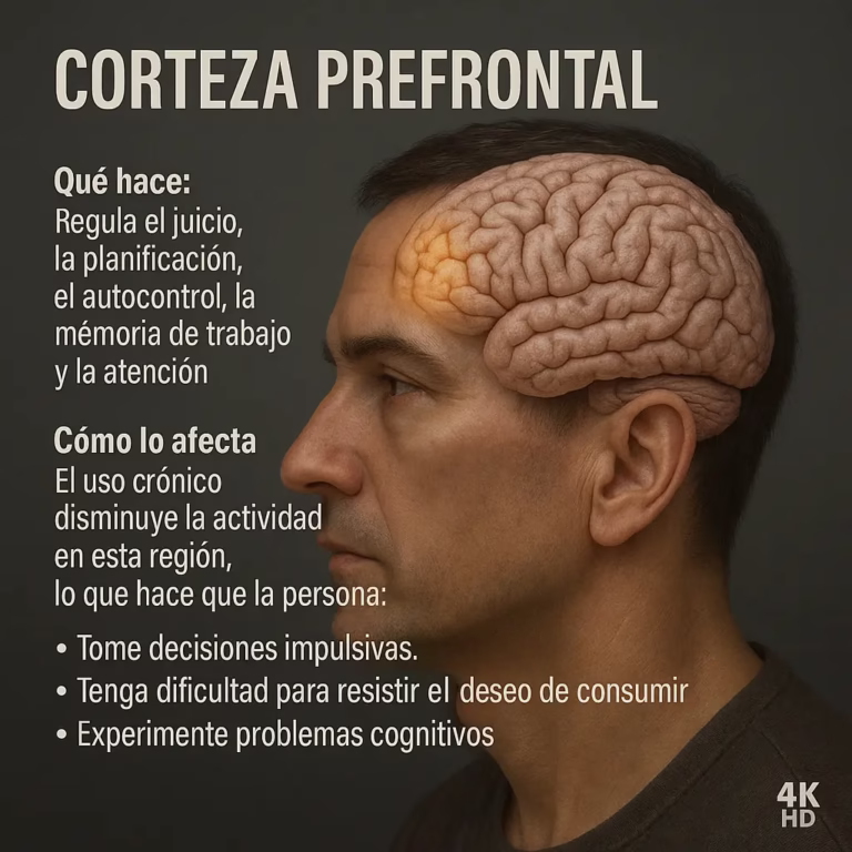 Cómo lo afecta: El uso crónico de speed disminuye la actividad en esta región, lo que hace que la persona: