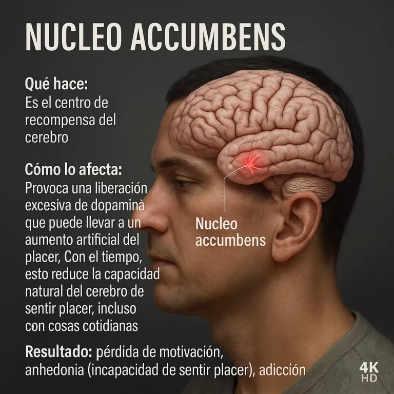 Qué hace: Es el centro de recompensa del cerebro, donde se liberan grandes cantidades de dopamina cuando algo nos genera placer (comer, sexo, drogas).