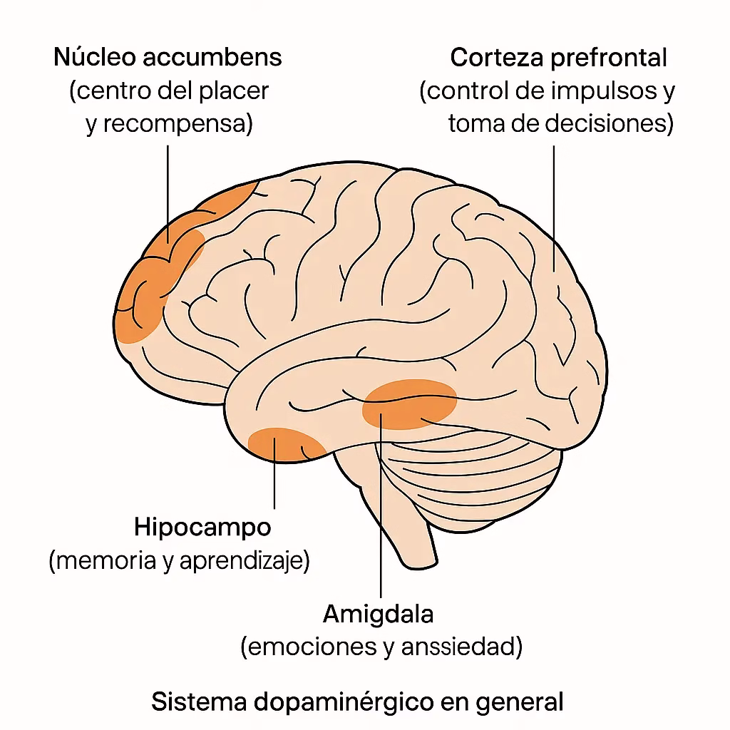 ➜ Resultado: pérdida de motivación, anhedonia (incapacidad de sentir placer), adicción.